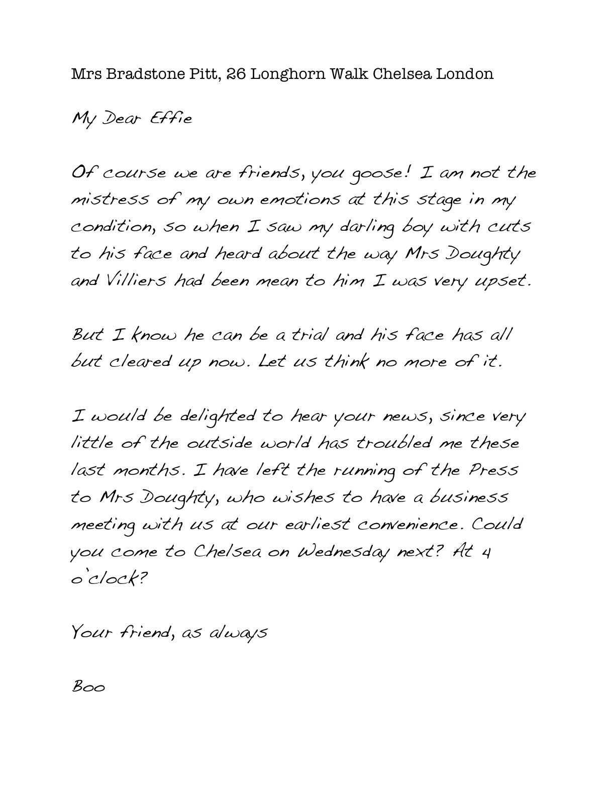 I constantly wonder what Boo actually really thinks of Effie – being in the position that she’s in. Poor, poor Effie. Reply